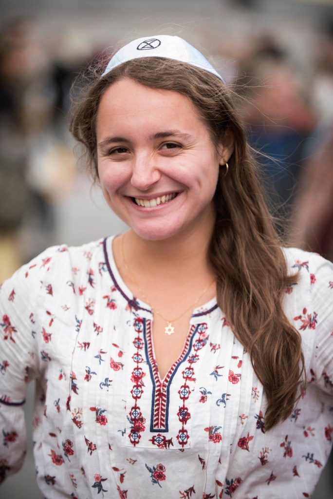 Humans of XR Shulamit – teacher from London. “I’m here with XR Jews because I believe this is the most important and most urgent act of tikkun olam (healing the world) that has ever been required of us. As Rabbi Hillel said, “If not now, when?”